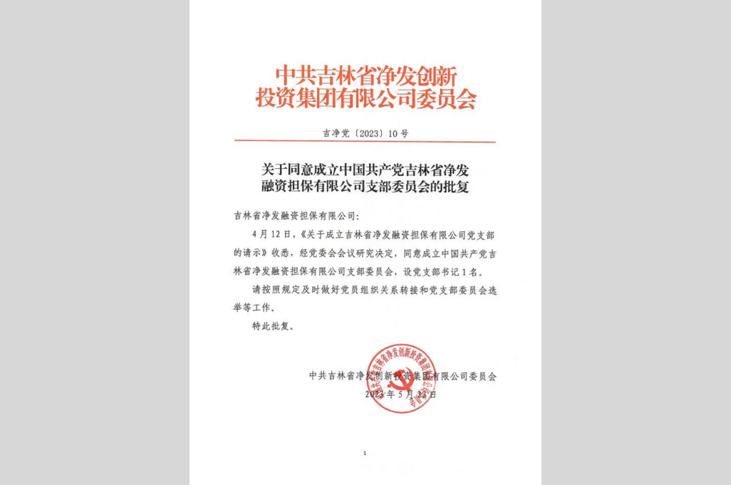 中國共產(chǎn)黨吉林省凈發(fā)融資擔(dān)保有限公司支部委員會(huì)正式獲批成立。