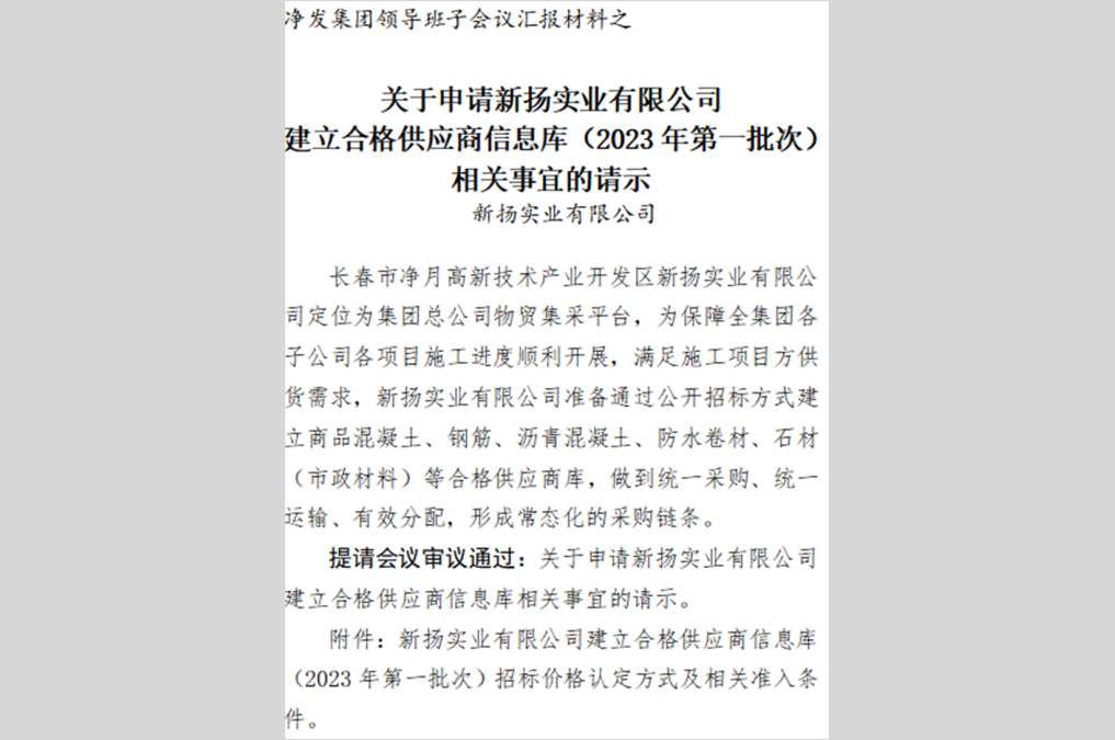 長(zhǎng)春市凈月高新技術(shù)產(chǎn)業(yè)開(kāi)發(fā)區(qū)新?lián)P實(shí)業(yè)有限公司于2021年7月正式成立,注冊(cè)資本金為1.1億元,為服務(wù)區(qū)內(nèi)重點(diǎn)基礎(chǔ)設(shè)施提供建筑材料供應(yīng)保障。
