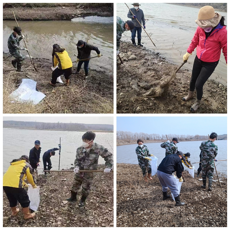 活動現(xiàn)場,大家手拿魚叉、袋子等工具,發(fā)揚不怕臟、不怕累的精神,進(jìn)行分工合作,認(rèn)真對水庫周邊區(qū)域死魚垃圾進(jìn)行清理,集中進(jìn)行無害化處理?;顒又?,每個人都展現(xiàn)出“擼起袖子加油干”的精神面貌,經(jīng)過兩個小時的辛勤勞動,共清理死魚垃圾1000余斤。