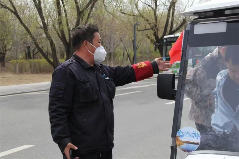 營銷運營黨支部以實際行動踐行文明旅游風尚,提升景區(qū)服務(wù)水平和服務(wù)素質(zhì),為游客提供更加優(yōu)質(zhì)的旅游服務(wù),維護交通安全,旅游秩序,助力景區(qū)有效做好接待,共赴凈月山水之約。