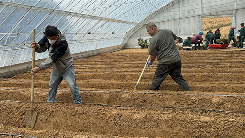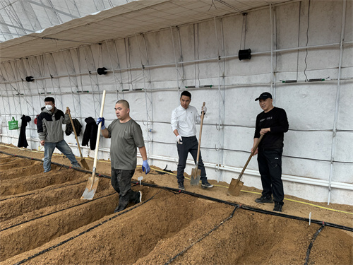 10月1日起,在新湖基地新建的試驗(yàn)四季日光溫室內(nèi),開始進(jìn)行整地、施有機(jī)肥、安裝地灌設(shè)施等前期工作。
