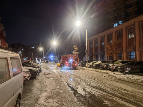 面對突發(fā)狀況,環(huán)衛(wèi)公司立即啟動應(yīng)急響應(yīng)機制。凈發(fā)城市運營公司總經(jīng)理李志國、凈發(fā)環(huán)衛(wèi)公司總經(jīng)理張博等同志迅速抵達現(xiàn)場,靠前指揮,緊急調(diào)配清雪車輛,撒布融雪劑進行除冰作業(yè),工作人員不畏嚴(yán)寒,全力消除交通安全隱患,截止27日早8點,路面已恢復(fù)正常通行。