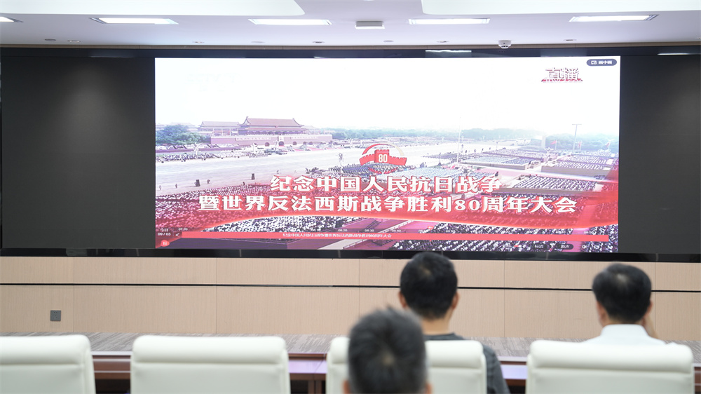 2025年9月3日上午9時,紀(jì)念中國人民抗日戰(zhàn)爭暨世界反法西斯戰(zhàn)爭勝利80周年大會在北京天安門廣場隆重舉行。凈發(fā)集團組織全體職工在集團417會議室集體觀看閱兵儀式直播,認(rèn)真聆聽習(xí)近平總書記重要講話,共同回顧中華民族艱苦卓絕的抗戰(zhàn)歷史,感受新時代中國的強國強軍風(fēng)采。