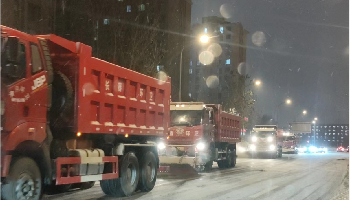 為應(yīng)對此次暴雪,凈發(fā)環(huán)衛(wèi)公司提前制定工作方案和應(yīng)急預(yù)案,成立了領(lǐng)導(dǎo)小組,完成196臺大型清雪設(shè)備維護(hù)和1100噸融雪劑等清雪物資調(diào)配工作,組織清雪人員1374人全面進(jìn)入備戰(zhàn)狀態(tài)。5日下午,出動大中型滾刷車116輛,人員1348人次,編成14個作業(yè)區(qū)域,平行展開掃水作業(yè),對城區(qū)194條主次街路及34條農(nóng)村主要道路展開不間斷循環(huán)作業(yè),共處理積水點16處,作業(yè)面積近1000萬平米。 6日12時,全區(qū)主次街路、農(nóng)村主要道路融雪劑全部撒布完畢。由于方案部署得當(dāng),沒有出現(xiàn)道路結(jié)冰現(xiàn)象。下午16時,組織滾刷車輛編組,展開聯(lián)合循環(huán)清雪作業(yè),并根據(jù)雪量情況組織260臺外運車輛邊清邊運,確保7日早高峰前,路凈車通。