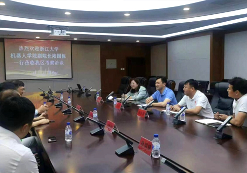 同管委會(huì)呂東副主任接待浙江大學(xué)機(jī)器人學(xué)院副院長陸國棟商業(yè)洽談。